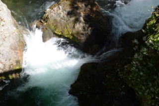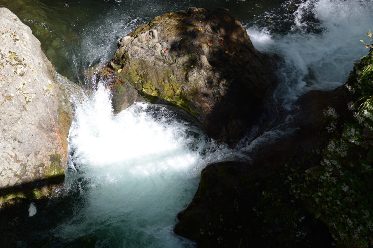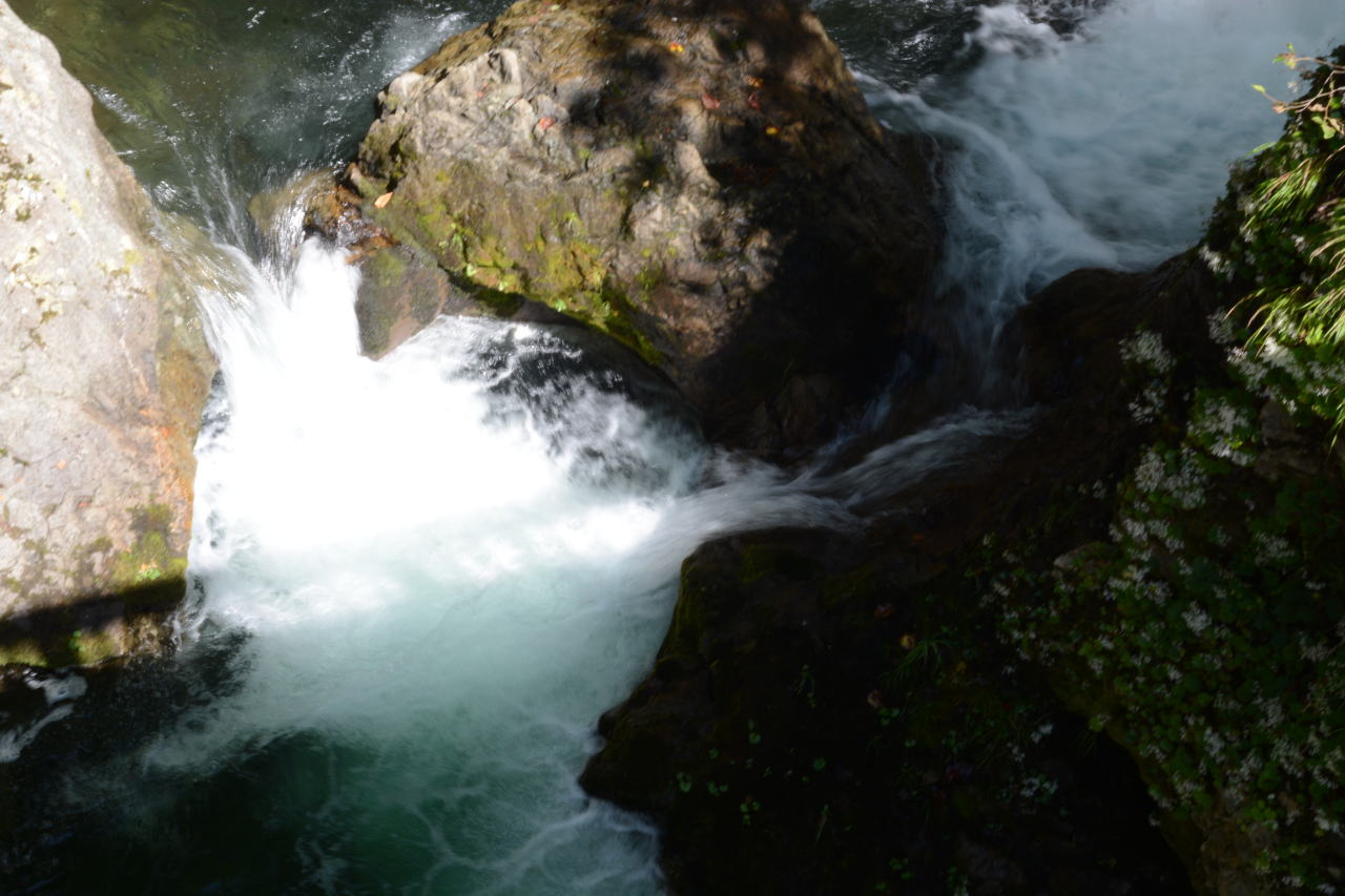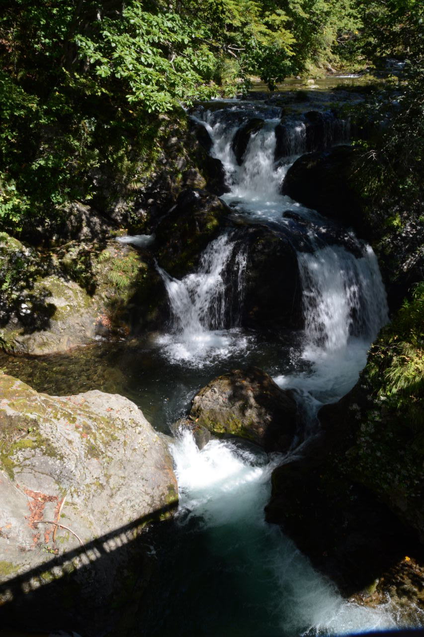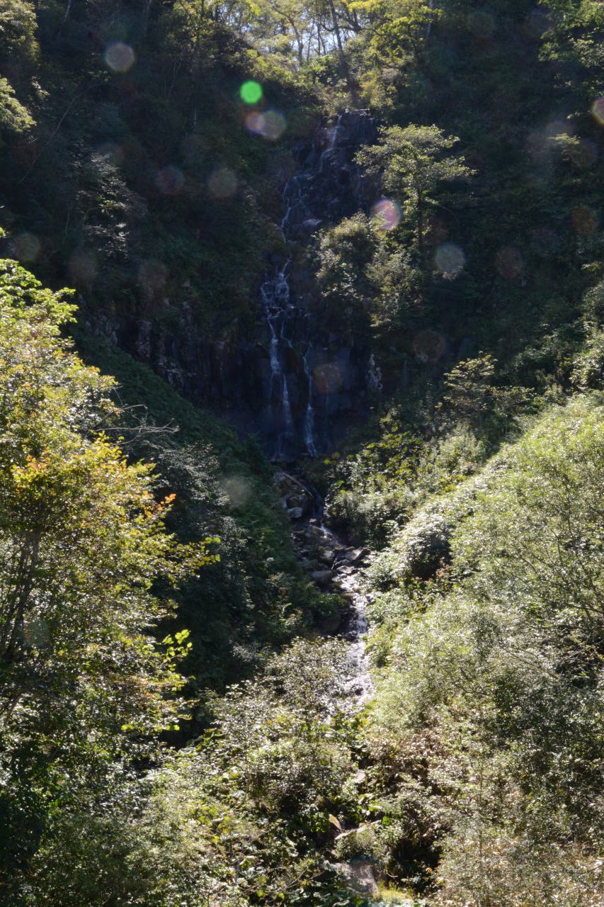 の滝です。遊歩道で滝の近くまで行くことができ、新緑と紅葉、また冬の氷結した滝も見ごたえがあります。また、すぐ近くには「魚止めの滝」もあります。