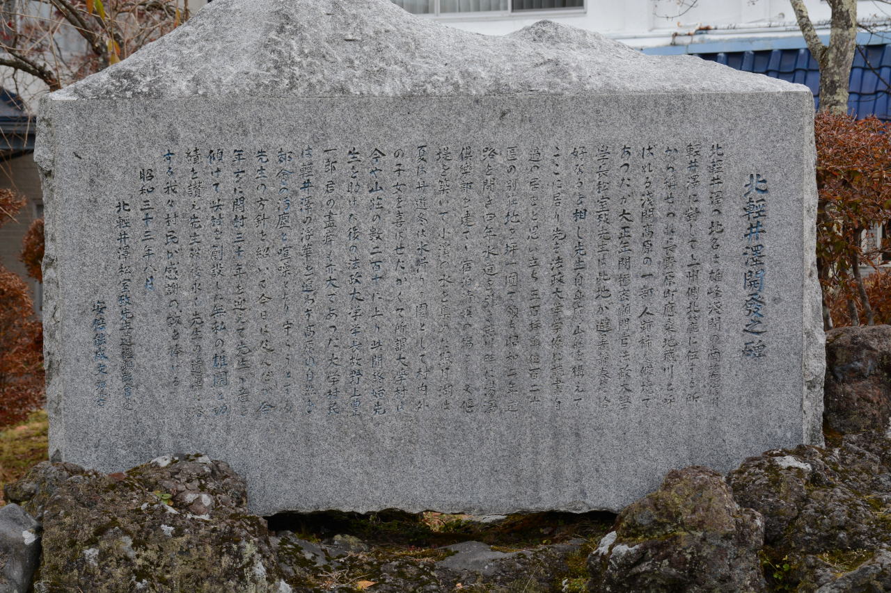| 北軽井沢開発の碑は北軽井沢を理解するために必要なことが書いてあるような気がするのだが、花崗岩に彫られているのか文字が判然とせずテキスト化を断念。 |