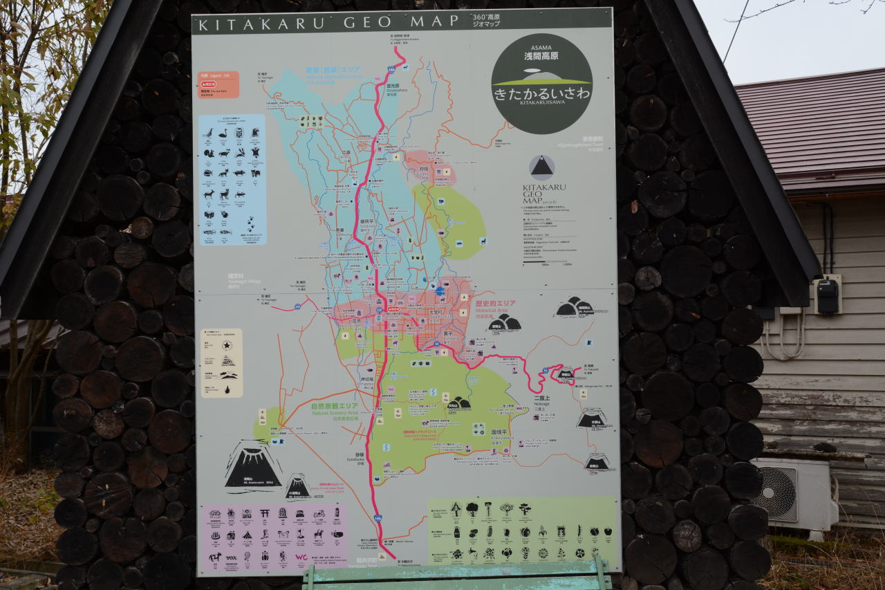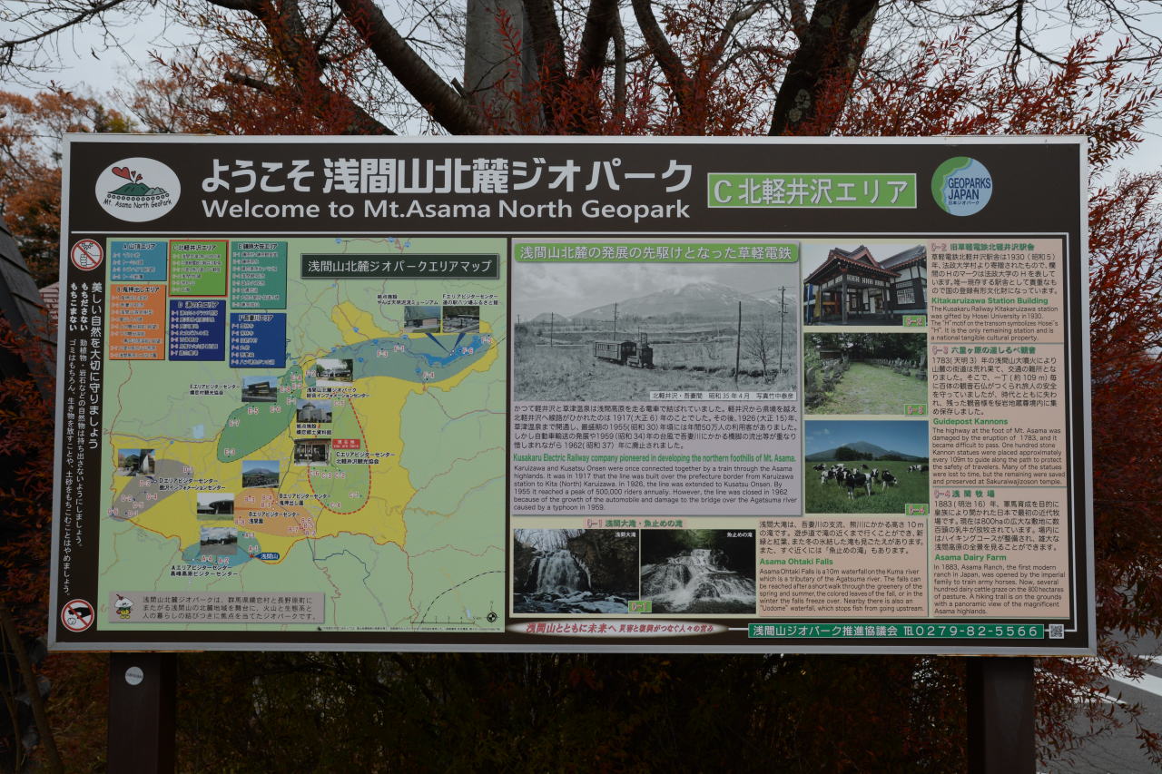 | 旧碓氷峠見晴台へ景色を見に行く。歩行者が多く、細い道も多いので軽井沢中心地は車で来るところではないと実感する。考えてみればプリンスのスキー場に来るくらいで軽井沢に観光できたことはなかった。見晴らし台の後、雲場池を目指したが駐車場を見つけることができず断念して北軽井沢へ向かう。別荘地の紅葉がきれいだった。 |