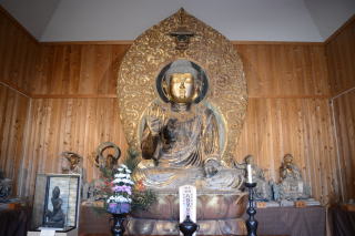 本尊は木造の丈六釈迦如来坐像です。像高は二三六cmの堂々としたもので、像内の背部に暦応三年(一三四○)の墨書銘があります。現存する諸国分寺の多くは薬師如来を本尊としていますが、国分寺本来の本尊である丈六の釈迦如来を本尊としている事は特筆すべきです。明治三十四年(一九〇一)八月二日、国宝に指定され、現在は国の重要文化財に指定されています。
