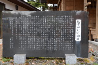 社殿は大工棟梁川口徳三郎の精魂込めた施工により完成し建築修理祭典と今回の茅葺屋根葺替工事等は氏子の奉納金労力奉仕と篤志者の協賛により管理運営されている
