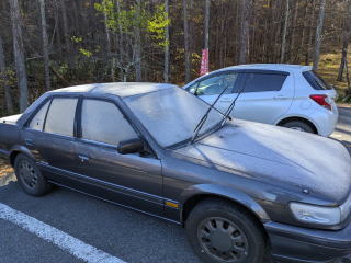 嬬恋で迎えた朝は放射冷却もあったのかとても寒い。真っ白に霜が降りた車はひなたへ移動しおひさまの力で解凍する。
